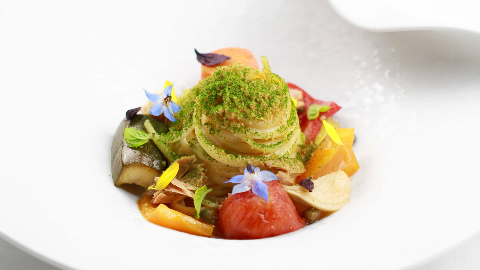 Carpaccio di manzo, Giardiniera di Morgan e foglie di cappero